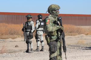 (250206) -- CIUDAD JUAREZ, 6 febrero, 2025 (Xinhua) -- Elementos de la Guardia Nacional y del Ejército mexicano realizan un operativo conjunto en la frontera entre México y Estados Unidos, en Ciudad Juárez, en el estado de Chihuahua, en el norte de México, el 6 de febrero de 2025. Los presidentes de México y Estados Unidos, Claudia Sheinbaum y Donald Trump, respectivamente, acordaron el lunes postergar la imposición de aranceles a las exportaciones mexicanas por un mes, a cambio de que México despliegue 10.000 efectivos de la Guardia Nacional en su frontera norte para enfrentar el tráfico de drogas y la migración irregular hacia territorio estadounidense. (Xinhua/Luis Perea) (lp) (rtg) (ra) (vf)