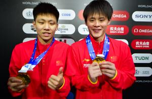 (250406) -- GUADALAJARA, 6 abril, 2025 (Xinhua) -- Imagen del 5 de abril de 2025 de Zhu Zifeng (d)/Cheng Zilong, de China, festejando después de la ceremonia de premiación de la final de 10 metros sincronizados masculinos en la Copa Mundial de Clavados, en Guadalajara, estado de Jalisco, México. (Xinhua/Alejandro Acosta) (fc) (oa) (ah)