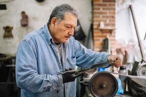 (260203) — JALISCO, 3 febrero, 2026 (Xinhua) — Imagen del 17 de enero de 2026 de un trabajador puliendo un cuchillo en el taller «Cuchillos Ojeda», en el municipio de Sayula, en el estado de Jalisco, México. En el sur del occidental estado mexicano de Jalisco, el municipio de Sayula mantiene viva una tradición metalúrgica que ha pasado de generación en generación: entre hornos, limas y aceros templados, la producción de cuchillos artesanales Ojeda se ha consolidado como ejemplo de patrimonio cultural vivo y de cómo un oficio tradicional puede integrarse a mercados contemporáneos sin perder identidad. (Xinhua/Miriam Jiménez) (fc) (jg) (ra) (vf)