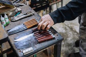 (260203) — JALISCO, 3 febrero, 2026 (Xinhua) — Imagen del 17 de enero de 2026 de un trabajador revisando un conjunto de cuchillos de uso doméstico en el taller «Cuchillos Ojeda», en el municipio de Sayula, en el estado de Jalisco, México. En el sur del occidental estado mexicano de Jalisco, el municipio de Sayula mantiene viva una tradición metalúrgica que ha pasado de generación en generación: entre hornos, limas y aceros templados, la producción de cuchillos artesanales Ojeda se ha consolidado como ejemplo de patrimonio cultural vivo y de cómo un oficio tradicional puede integrarse a mercados contemporáneos sin perder identidad. (Xinhua/Miriam Jiménez) (fc) (jg) (ra) (vf)