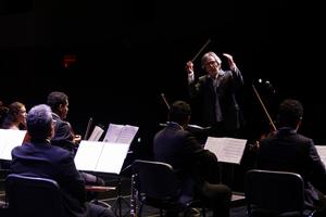 (250913) -- NAUCALPAN, 13 septiembre, 2025 (Xinhua) -- Imagen del 4 de septiembre de 2025 del maestro mexicano y director de orquesta, Antonio López Ríos (atrás), dirigiendo a la Orquesta López Ríos y el Coro Ensamble México durante el magno concierto "Recordar la historia, apreciar la paz" en el marco de la conmemoración del 80º aniversario de la victoria en la Guerra de Resistencia del Pueblo Chino contra la Agresión Japonesa y la Guerra Mundial Antifascista, en el Teatro Javier Barros Sierra, en el Centro Cultural Acatlán de la Universidad Nacional Autónoma de México (UNAM), en Naucalpan, México. Para López Ríos la experiencia de dirigir la interpretación de música china por primera vez el pasado 4 de septiembre frente a más de 500 personas que colmaron el Teatro Javier Barros Sierra de la UNAM fue un auténtico aprendizaje y un compromiso cultural. (Xinhua/Francisco Cañedo) (fc) (jg) (da)