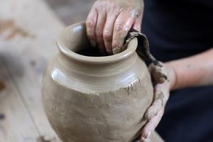 (250915) -- OAXACA, 15 septiembre, 2025 (Xinhua) -- Imagen del 14 de septiembre de 2025 de una artesana moldeando arcilla para fabricar cerámica negra en un taller, en San Bartolo Coyotepec, en el estado de Oaxaca, México. En San Bartolo Coyotepec, la tradición de la cerámica negra es antigua y reconocida. (Xinhua/Li Mengxin) (oa) (ah) (ce)