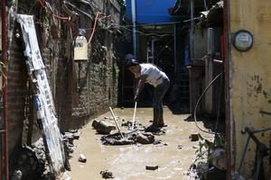 (251012) — POZA RICA, 12 octubre, 2025 (Xinhua) — Una mujer intenta limpiar una calle inundada por las lluvias, en la ciudad de Poza Rica, en el estado de Veracruz, México, el 12 de octubre de 2025. El estado mexicano de Veracruz, en la región oriental del país, enfrenta una severa emergencia derivada del desbordamiento del río Cazones que arrasó con viviendas, caminos y cosechas, en la región norte de la localidad del Golfo de México. (Xinhua/Francisco Cañedo) (fc) (oa) (da)