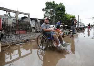 (251011) -- POZA RICA, 11 octubre, 2025 (Xinhua) --Personas reaccionan en una calle inundada por las lluvias, en la ciudad de Poza Rica, en el estado de Veracruz, México, el 11 de octubre de 2025. A 37 subió el número de muertos por las intensas lluvias registradas en los últimos días en el centro y oriente de México, informó el sábado la gubernamental Coordinación Nacional de Protección Civil. (Xinhua/Francisco Cañedo) (fc) (ra) (da)