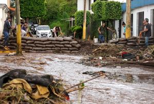 (251010) -- PUEBLA, 10 octubre, 2025 (Xinhua) -- Imagen cedida por el Sol de Puebla de personas limpiando una calle afectada por las lluvias, en Huauchinango, estado de Puebla, México, el 10 de octubre de 2025. Al menos 24 muertos han dejado las intensas lluvias que han azotado gran parte de México en los últimos días, además de miles de viviendas afectadas, deslaves y desbordamientos de ríos, de acuerdo con reportes de los gobernadores de los estados del centro y este del país en una reunión virtual con la presidenta mexicana, Claudia Sheinbaum. (Xinhua/Daniel Casas/El Sol de Puebla) (vf) (ce) ***CREDITO OBLIGATORIO*** ***SOLO USO EDITORIAL***