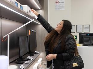 (240823) -- CIUDAD DE MEXICO, 23 agosto, 2024 (Xinhua) -- Imagen del 26 de julio de 2024 de Valeria Ramírez revisando una cámara de vigilancia para el hogar en la tienda de la marca china Xiaomi, en la Ciudad de México, capital de México. La Secretaría de Economía de México informó que la principal compra de México a China en 2023 fue de teléfonos, incluidos los teléfonos móviles y los de otras redes inalámbricas, por un valor levemente superior a los 9.000 millones de dólares. (Xinhua/Li Mengxin) (oa) (ra) (ce)