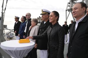 (260201) -- SONORA, 1 febrero, 2026 (Xinhua) -- Imagen proveída por la Presidencia de México de la presidenta mexicana, Claudia Sheinbaum (2-d), participando durante la presentación del Proyecto de Expansión del Puerto de Guaymas, en el estado de Sonora, México, el 1 de febrero de 2026. El Gobierno de México planea enviar a Cuba alimentos y otros insumos, como parte de la ayuda humanitaria que destina a la isla caribeña, afirmó el domingo Sheinbaum. (Xinhua/Presidencia de México) (rtg) (da)