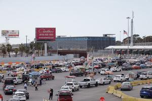 (250128) -- TIJUANA, 28 enero, 2025 (Xinhua) -- Personas a bordo de sus vehículos hacen fila en la garita del cruce fronterizo Tijuana-San Ysidro para ingresar hacia Estados Unidos, en Tijuana, México, el 28 de enero de 2025. (Xinhua/Joebeth Terriquez) (jt) (jg) (ra) (vf)