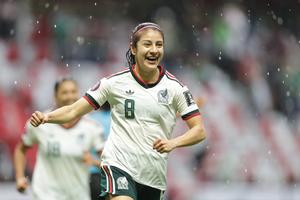 (260419) -- TOLUCA, 19 abril, 2026 (Xinhua) -- Imagen del 18 de abril de 2026 de Alexia Delgado, de México, festejando su anotación durante el partido de clasificación para el Campeonato CONCACAF W 2026 ante Puerto Rico, celebrado en el Estadio Nemesio Diez, en Toluca, México. (Xinhua/Francisco Cañedo) (fc) (oa) (ah)