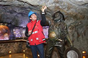 (250510) — ZACATECAS, 10 mayo, 2025 (Xinhua) — Imagen del 7 de mayo de 2025 de un guía turístico realizando una presentación para los turistas en la Mina El Edén, en Zacatecas, en el estado de Zacatecas, México. Alguna vez una importante región minera de plata en América Latina, Zacatecas había impulsado la prosperidad histórica de la ciudad con su riqueza mineral. A medida que los recursos se agotaban, la ciudad cambió su enfoque hacia la cultura y el turismo preservando su rica arquitectura colonial y su patrimonio minero, incluido el centro histórico de la ciudad, reconocido como Sitio Patrimonio Cultural de la Humanidad por la UNESCO, y la icónica Mina El Edén, y atrayendo a numerosos turistas de todo el mundo. (Xinhua/Li Mengxin) (oa) (da)