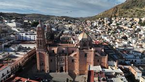 (250510) -- ZACATECAS, 10 mayo, 2025 (Xinhua) -- Vista aérea tomada con un dron el 6 de mayo de 2025 de la Catedral Basílica de Zacatecas, en el estado de Zacatecas, México. Alguna vez una importante región minera de plata en América Latina, Zacatecas había impulsado la prosperidad histórica de la ciudad con su riqueza mineral. A medida que los recursos se agotaban, la ciudad cambió su enfoque hacia la cultura y el turismo preservando su rica arquitectura colonial y su patrimonio minero, incluido el centro histórico de la ciudad, reconocido como Sitio Patrimonio Cultural de la Humanidad por la UNESCO, y la icónica Mina El Edén, y atrayendo a numerosos turistas de todo el mundo. (Xinhua/Li Mengxin) (oa) (da)