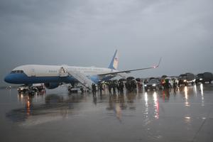 (250902) -- ZUMPANGO, 2 septiembre, 2025 (Xinhua) -- El avión del secretario de Estado estadounidense, Marco Rubio, aterriza en el Aeropuerto Internacional Felipe Angeles, en Zumpango, México, el 2 de septiembre de 2025. El secretario de Relaciones Exteriores de México, Juan Ramón de la Fuente, recibió el martes en el Aeropuerto Internacional Felipe Angeles a Rubio, quien realiza una visita de trabajo al país latinoamericano para reforzar la cooperación bilateral en distintos ámbitos. (Xinhua/Francisco Cañedo) (fc) (vf) (ce)