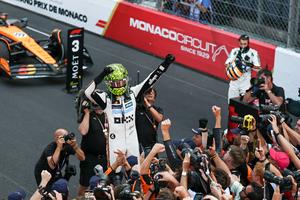 (250526) -- MONTE CARLO, 26 mayo, 2025 (Xinhua) -- Imagen del 25 de mayo de 2025 del piloto británico de la escudería McLaren, Lando Norris, festejando su victoria después del Gran Premio de Mónaco de Fórmula Uno, en el Circuito de Mónaco, en Monte Carlo, Mónaco. (Xinhua/Qian Jun) (rtg) (ah) (vf)