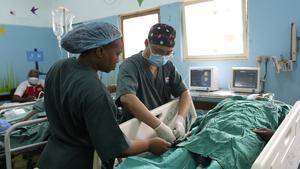 (250627) -- MAPUTO, 27 junio, 2025 (Xinhua) -- Imagen del 11 de abril de 2025 de Ling Yong (d), un médico del equipo médico chino en Mozambique, y una trabajadora médica local proporcionando atención posoperatoria a un paciente, en Maputo, Mozambique. A lo largo de los 50 años transcurridos desde el establecimiento de sus relaciones diplomáticas, China y Mozambique han forjado una asociación sólida y confiable, basada en la confianza y el apoyo mutuos. La cooperación ha aportado mejoras al desarrollo local y las condiciones de vida de la población. (Xinhua/Liu Jie) (jg) (da) (vf)