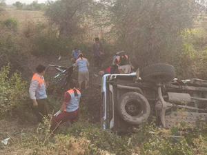 (250316) -- MANDALAY, 16 marzo, 2025 (Xinhua) -- Imagen del 15 de marzo de 2025 de rescatistas trabajando en el sitio de un accidente automovilístico, en el municipio de Sintgaing, en la región de Mandalay, Myanmar. Seis personas murieron y siete más resultaron heridas en un accidente automovilístico en la región de Mandalay, en el centro de Myanmar, dijo a Xinhua un funcionario de una organización de rescate local el domingo. (Xinhua/Organización de Rescate Sadanar Mon) (rtg) (ah)