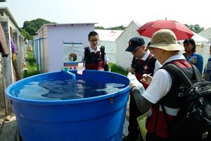 (250510) -- MANDALAY, 10 mayo, 2025 (Xinhua) -- Imagen del 9 de mayo de 2025 de miembros del equipo chino de prevención de la salud en Myanmar recolectando muestras de agua en un refugio de socorro tras el terremoto, en Mandalay, Myanmar. El equipo de prevención de la salud y epidemias enviado por el Gobierno chino a Myanmar continuó el viernes su labor en las áreas afectadas por el terremoto de Mandalay. El equipo de 50 miembros, que transporta suministros y equipos médicos de emergencia, llegó a Myanmar el 19 de abril para apoyar los esfuerzos locales de prevención y control de la salud tras el desastre mortal. (Xinhua/Myo Kyaw Soe) (jg) (da)