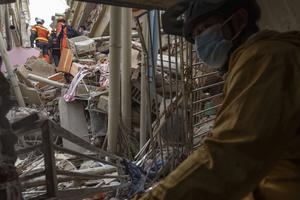 (250402) -- MANDALAY, 2 abril, 2025 (Xinhua) -- Imagen del 1 de abril de 2025 del Equipo de Búsqueda y Rescate de China y un equipo de rescate de Hong Kong de China llevando a cabo una operación conjunta de búsqueda y rescate de una niña desaparecida llamada Shin Shin en la residencia Sky Villa, en Mandalay, Myanmar. El Equipo de Búsqueda y Rescate de China, asignado por el Ministerio de Gestión de Emergencias del país, y un equipo de rescate de Hong Kong de China llevaron a cabo una operación conjunta de búsqueda y rescate para una niña desaparecida llamada Shin Shin en la residencia Sky Villa el martes. La niña de cinco años se encuentra desaparecida desde el terremoto de la semana pasada. (Xinhua/Cai Yang) (ah) (ra) (vf)