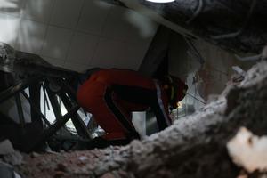 (250401) — MANDALAY, 1 abril, 2025 (Xinhua) — Imagen del 30 de marzo de 2025 de un miembro del Equipo de Búsqueda y Rescate de China realizando labores de rescate en el sitio de un terremoto, en Mandalay, Myanmar. Tras el devastador terremoto en Myanmar, varios equipos de rescate chinos han llegado a las áreas afectadas por el desastre, trabajando con los equipos de respuesta locales las 24 horas del día para buscar sobrevivientes. Los rescatistas peinaron las ruinas de apartamentos, hoteles y hospitales en busca de señales de vida. Las continuas réplicas, los cortes de electricidad, las carreteras destruidas y las interrupciones de las comunicaciones dificultaron aún más la labor de rescate. Mientras tanto, más equipos de rescate chinos se dirigen a Myanmar, trayendo expertos en sismología, ingenieros estructurales, personal médico y unidades caninas, así como detectores de vida, equipos de demolición y sistemas de hospitales de campaña. (Xinhua/Cai Yang) (jg) (ra) (vf)