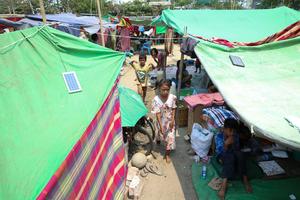 (250403) — MANDALAY, 3 abril, 2025 (Xinhua) — Niños son vistos en un refugio temporal para personas afectadas por el terremoto, en Mandalay, Myanmar, el 3 de abril de 2025. El número de muertos a causa de un terremoto de magnitud 7,9 en la escala de Richter en Myanmar aumentó a 3.145, con 4.589 heridos y 221 desaparecidos, informó el jueves la Radio y Televisión de Myanmar. (Xinhua/Myo Kyaw Soe) (rtg) (ra) (vf)