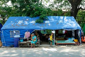 (250510) -- MANDALAY, 10 mayo, 2025 (Xinhua) -- Imagen del 9 de mayo de 2025 de personas afectadas por el terremoto vistas en una tienda de campaña donada por China, en Mandalay, Myanmar. (Xinhua/Myo Kyaw Soe) (oa) (da)