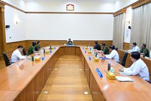 (250731) -- NAY PYI TAW, 31 julio, 2025 (Xinhua) -- El Consejo de Defensa y Seguridad Nacional (NDSC, por sus siglas en inglés) de Myanmar, sostiene una reunión, en Nay Pyi Taw, Myanmar, el 31 de julio de 2025. El NDSC de Myanmar formó el jueves un nuevo Gobierno de unión y la Comisión Estatal de Seguridad y Paz, informó la cadena estatal de radio y televisión MRTV. (Xinhua/Canal de Televisión Myawady Variety) (rtg) (ra) (ce)