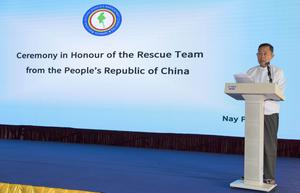 MYANMAR-NAY PYI TAW-TERREMOTO-EQUIPOS CHINOS DE RESCATE-PARTIDA