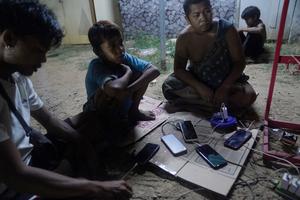 (250331) — NAY PYI TAW, 31 marzo, 2025 (Xinhua) — Residentes afectados por el terremoto cargan sus teléfonos en el suelo, en Nay Pyi Taw, Myanmar, el 31 de marzo de 2025. La cifra de muertos en el sismo de magnitud 7,9 que sacudió Myanmar el pasado viernes ha ascendido a los 2.056, mientras que cerca de 3.900 personas resultaron heridas, además de haber otras 270 desaparecidas, según informó el lunes el Equipo de Información del Consejo de Administración Estatal del país. (Xinhua/Wang Shen) (oa) (ah) (vf)