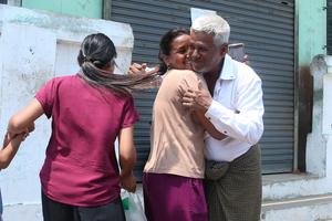 (260417) -- YANGON, 17 abril, 2026 (Xinhua) -- Un prisionero liberado (d) reacciona mientras es recibido por personas tras ser liberado de la Prisión de Insein, en Yangón, Myanmar, el 17 de abril de 2026. El expresidente de Myanmar, U Win Myint, fue liberado bajo amnistía el viernes, informó la estatal Radio y Televisión de Myanmar (MRTV). El presidente de Myanmar, U Min Aung Hlaing, decretó una amnistía el viernes para más de 4.500 presos, coincidiendo con el primer día de Año Nuevo del calendario birmano, según MRTV. (Xinhua/Myo Kyaw Soe) (oa) (ra) (ce)