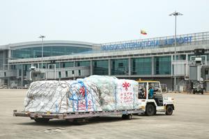 MYANMAR-YANGON-TERREMOTO-CHINA-QUINTO LOTE-SUMINISTROS DE AYUDA HUMANITARIA-LLEGADA
