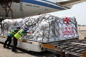 MYANMAR-YANGON-TERREMOTO-CHINA-SUMINISTROS DE AYUDA HUMANITARIA-LLEGADA