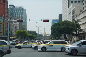 (250330) -- YANGON, 30 marzo, 2025 (Xinhua) -- Automóviles circulan por una calle, en Yangón, Myanmar, el 30 de marzo de 2025. Un fuerte terremoto sacudió el país del sudeste asiático el viernes. (Xinhua/Wang Shen) (oa) (ah)