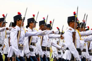 (250919) -- KATMANDU, 19 septiembre, 2025 (Xinhua) -- Oficiales de policía participan en un desfile llevado a cabo para celebrar el Día de la Constitución, en Katmandú, Nepal, el 19 de septiembre de 2025. (Xinhua/Sulav Shrestha) (rtg) (ra) (vf)