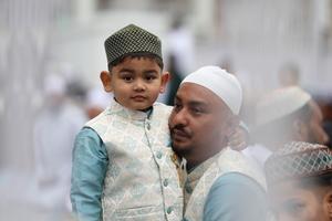 (260321) -- KATMANDU, 21 marzo, 2026 (Xinhua) -- Un devoto y un niño son vistos durante las oraciones del Eid al-Fitr en una mezquita, en Katmandú, Nepal, el 21 de marzo de 2026. (Xinhua/Sulav Shrestha) (jg) (da)