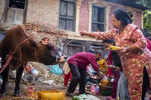 NEPAL-LALITPUR-TIHAR-ADORACION A LA VACA