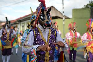 (251124) -- CARAZO, 24 noviembre, 2025 (Xinhua) -- Imagen del 22 de noviembre de 2025 de personas participando en el desfile El Güegüense, en la ciudad de Diriamba, en el departamento de Carazo, Nicaragua. Nicaragua conmemoró el sábado con un colorido desfile, concursos y música, el vigésimo aniversario de la declaración de la representación callejera y popular El Güegüense como Patrimonio Oral e Intangible de la Humanidad. (Xinhua/Noelia Aráuz) (fc) (rtg) (ah) (ce)