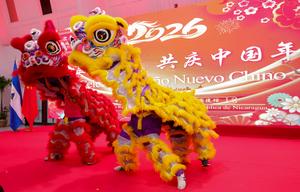 (260208) -- MANAGUA, 8 febrero, 2026 (Xinhua) -- Imagen cedida por el Consejo de Comunicación y Ciudadanía de la República de Nicaragua del 5 de febrero de 2026 de una danza del león llevada a cabo durante una recepción oficial con motivo de la llegada del Año Nuevo chino del Caballo, en Managua, Nicaragua. (Xinhua/Consejo de Comunicación y Ciudadanía de la República de Nicaragua) (fc) (oa) (da)