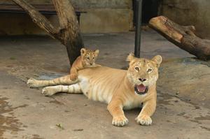 (251126) -- MANAGUA, 26 noviembre, 2025 (Xinhua) -- Imagen del 25 de noviembre de 2025 de una ligre y su cachorra tiligre (híbrido de ligre y tigre) descansando en el Parque Zoológico Nacional de Nicaragua, en Managua, Nicaragua. Dos cachorras tiligres fueron presentadas el martes en el Parque Zoológico Nacional de Nicaragua, en un nacimiento considerado inusual por el origen híbrido de su madre. "Tienen una particularidad muy especial para nosotros porque su mamá es un híbrido de león y tigre, es una ligre, entonces normalmente solo el 20 por ciento de estas hembras son fértiles y nosotros tenemos la dicha y suerte de tener una de ellas", indicó Heberto Ruiz, director del Parque perteneciente al Ministerio del Ambiente y de los Recursos Naturales. (Xinhua/Noelia Aráuz) (fc) (ah) (ra) (ce)