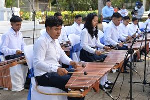 (260120) — MANAGUA, 20 enero, 2026 (Xinhua) — Imagen del 18 de enero de 2026 de jóvenes realizando una presentación musical durante la celebración del 159° aniversario del natalicio de Rubén Darío, en Managua, Nicaragua. Nicaragua celebró el 159° aniversario del natalicio de Rubén Darío, figura universal de la poesía y renovador de las letras en lengua española, cuyo legado lo consagró como el «Príncipe de las letras castellanas». (Xinhua/Noelia Aráuz) (fc) (oa) (ah) (vf)