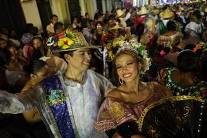 (251202) -- MASAYA, 2 diciembre, 2025 (Xinhua) -- Imagen cedida por el Consejo de Comunicación y Ciudadanía de la República de Nicaragua del 30 de noviembre de 2025 de personas participando en el baile de marimbas más grande de Nicaragua, en la ciudad de Masaya, Nicaragua. El baile de marimbas más grande de Nicaragua se llevó a cabo la noche del domingo en la ciudad de Masaya, localizada unos 26 km al sureste de Managua, con la participación de 5,342 personas que danzaron en la Avenida Real de San Jerónimo. (Xinhua/Consejo de Comunicación y Ciudadanía de Nicaragua) (fc) (oa) (ah) (ce)