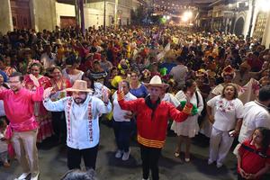 (251202) -- MASAYA, 2 diciembre, 2025 (Xinhua) -- Imagen cedida por el Consejo de Comunicación y Ciudadanía de la República de Nicaragua del 30 de noviembre de 2025 de personas participando en el baile de marimbas más grande de Nicaragua, en la ciudad de Masaya, Nicaragua. El baile de marimbas más grande de Nicaragua se llevó a cabo la noche del domingo en la ciudad de Masaya, localizada unos 26 km al sureste de Managua, con la participación de 5,342 personas que danzaron en la Avenida Real de San Jerónimo. (Xinhua/Consejo de Comunicación y Ciudadanía de Nicaragua) (fc) (oa) (ah) (ce)