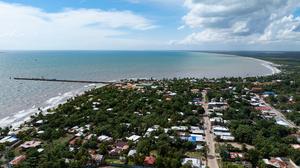 (251122) -- PUERTO CABEZAS, 22 noviembre, 2025 (Xinhua) -- Vista aérea tomada con un dron el 20 de noviembre de 2025 de Puerto Cabezas, en la región autónoma de la Costa Caribe Norte (RACCN), Nicaragua. Puerto Cabezas, localizada en la costa caribeña oriental de Nicaragua, es la capital de la RACCN. Esta distintiva ciudad portuaria se caracteriza por su clima cálido y húmedo, sus paisajes pintorescos y sus abundantes recursos naturales. (Xinhua/Li Mengxin) (oa) (da)