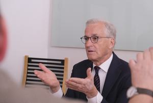 (250519) -- OSLO, 19 mayo, 2025 (Xinhua) -- El primer ministro noruego, Jonas Gahr Store, se reúne con periodistas extranjeros, en Oslo, Noruega, el 19 de mayo de 2025. El primer ministro noruego, Jonas Gahr Store dijo el lunes que Noruega busca continuar desarrollando el comercio bilateral con China y participar en la cooperación en importantes temas globales como la gobernanza de la inteligencia artificial (IA) y el cambio climático. (Xinhua/Zhang Yuliang) (rtg) (ah) (vf)