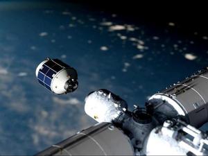 (250420) -- SHANGHAI, April 20, 2025 (Xinhua) -- This simulated image shows China's next-generation cargo craft Qingzhou docking with China's space station in orbit. TO GO WITH "China's new cargo spacecraft to make public debut" (Innovation Academy for Microsatellites of the Chinese Academy of Sciences/Handout via Xinhua)