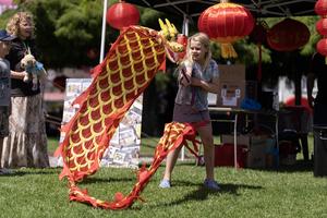 (260221) -- AUCKLAND, 21 febrero, 2026 (Xinhua) -- Una niña aprende la danza del dragón durante un evento para celebrar la Fiesta de la Primavera, en Auckland, Nueva Zelanda, el 21 de febrero de 2026. (Xinhua/Wu Jiaxiang) (jg) (da)
