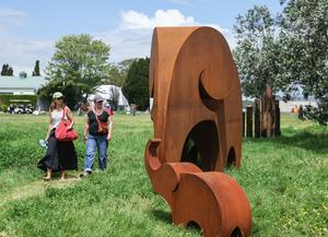 (251109) -- AUCKLAND, 9 noviembre, 2025 (Xinhua) -- Personas visitan la 29 exposición NZ Sculpture OnShore, en Auckland, Nueva Zelanda, el 9 de noviembre de 2025. La exposición se inauguró el sábado, con más de 120 obras de artistas de todo Nueva Zelanda. (Xinhua/Long Lei) (oa) (da)