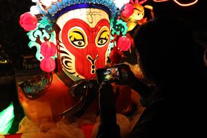 (260227) -- AUCKLAND, 27 febrero, 2026 (Xinhua) -- Imagen del 26 de febrero de 2026 de un visitante tomando fotografías de una instalación de arte durante una celebración del Festival de las Linternas, en Auckland, Nueva Zelanda. (Xinhua/Long Lei) (jg) (da) (vf)
