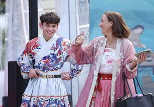 (250511) — AUCKLAND, 11 mayo, 2025 (Xinhua) — Personas se prueban atuendos tradicionales chinos durante el salón cultural «Té para la Armonía», en Auckland, Nueva Zelanda, el 11 de mayo de 2025. El salón cultural sobre el té se celebró el domingo en la pintoresca Aldea Histórica de Howick, en Auckland, la ciudad más grande de Nueva Zelanda, invitando a los huéspedes y residentes locales a sumergirse en la riqueza de la cultura tradicional china mientras se promueve el diálogo y la amistad entre China y Nueva Zelanda. (Xinhua/Long Lei) (oa) (da)
