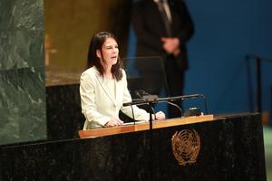 (250909) -- NACIONES UNIDAS, 9 septiembre, 2025 (Xinhua) -- Annalena Baerbock, presidenta de 80° período de sesiones de la Asamblea General de las Naciones Unidas (AGNU), habla en la inauguración del 80° período de sesiones en la sede de la ONU, en Nueva York, el 9 de septiembre de 2025. El 80° período de sesiones de la AGNU fue declarado inaugurado la tarde del martes por Annalena Baerbock, la nueva presidenta de la Asamblea General, en la sede la ONU en Nueva York. (Xinhua/Xie E) (jg) (ra) (vf)