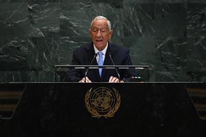 (250923) -- NACIONES UNIDAS, 23 septiembre, 2025 (Xinhua) -- El presidente portugués, Marcelo Rebelo de Sousa, pronuncia un discurso durante el debate general del 80º período de sesiones de la Asamblea General de las Naciones Unidas, en la sede de la Organización de las Naciones Unidas, en Nueva York, el 23 de septiembre de 2025. (Xinhua/Li Rui) (jg) (ra) (ce)