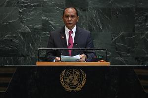 (250929) -- NACIONES UNIDAS, 29 septiembre, 2025 (Xinhua) -- Dionisio Da Costa Babo Soares, representante permanente de Timor Oriental ante las Naciones Unidas, pronuncia un discurso durante el debate general del 80º período de sesiones de la Asamblea General de las Naciones Unidas, en la sede de la Organización de las Naciones Unidas, en Nueva York, el 29 de septiembre de 2025. (Xinhua/Li Rui) (rtg) (ah) (vf)